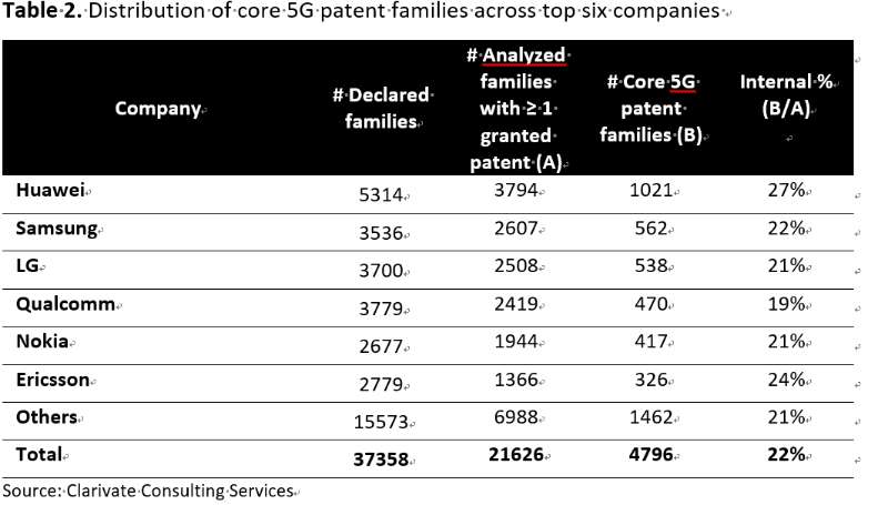 随着5G版图的不断演进,不少公司均在欧洲电信标准化协会(ETSI)声明专利,但事实上相当一部分专利并不能匹配标准。报告通过与ETSI标准的人工比对,从截至今年3月31日已作5G标准声明的21626族授权专利中,选出了与标准重合度高的标准必要专利,标记出5G核心标准必要专利。