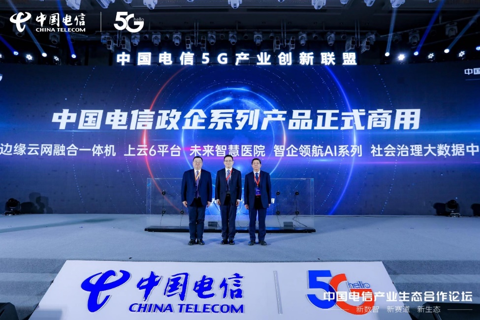 中国电信围绕“上云、注智、赋能、用数”,磨练打造客户切实需要的产品和服务。中国电信副总经理夏冰、政企信息服务事业群总经理上官亚非、研究院副院长蔡康一同启动政企系列新产品,宣告5G边缘云网融合一体机、上云6平台、商企领航AI、社会治理大数据中脑、智慧医院整体解决方案等政企五大产品的正式商用。
