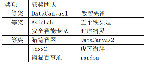 决赛最终获奖团队如下: