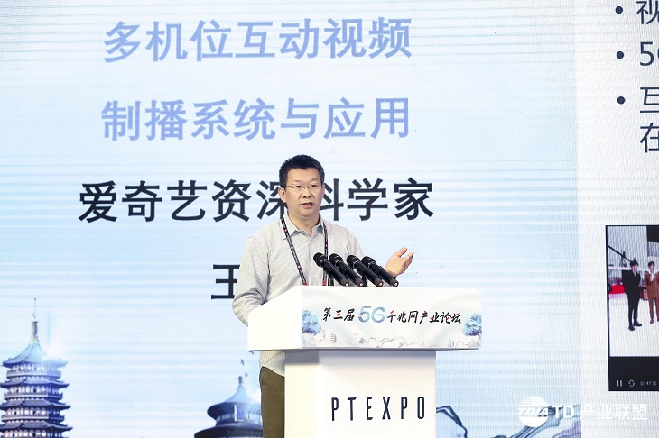 爱奇艺资深科学家王涛介绍了多机位互动视频制播系统,其产生的多种实时活动方式对5G提出了极高的体验需求,并提到5G千兆网络的普及打破了视频类体验提升的网络瓶颈,带来视频体验的品质化和多样性。