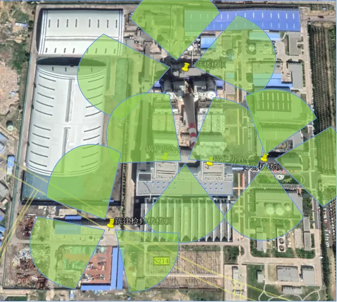 通过5个室内外5G宏基站、37个5G微基站,构建了厂级5G自组织网络,实现了火电厂区0.28平方公里5G信号的高质量无死角全覆盖。5G网络下行速率350Mbps,上行速率160Mbps,网络双向时延小于15ms,支持10的7次方个终端/平方千米的连接密度,数据处理能力超过10Gbps。
