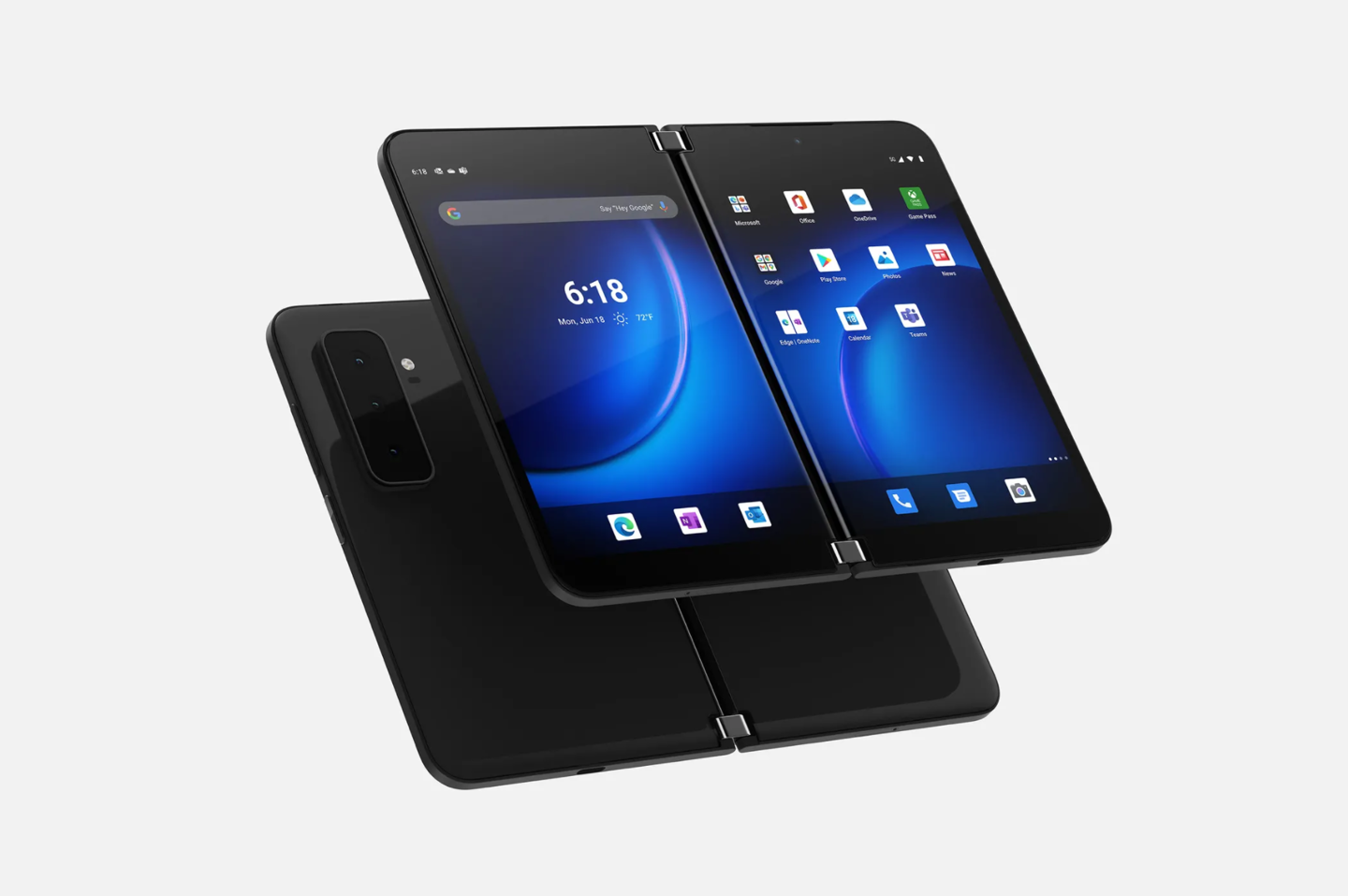 Surface Duo 2 有与第一代相同的白色和新的黑色可供选择,有两个 5.8 英寸、1344 x 1892 的 OLED 显示屏,通过一个铰链连接,可以像书本一样打开,也可以像帐篷一样撑起。这与三星的折叠屏手机明显不同,后者有一个大屏幕,可以折叠成两半。两个 Surface Duo 2 显示屏的对角线尺寸为 8.3 英寸,它们都具有更快的 90Hz 刷新率。屏幕上有轻微的曲线,可以在 Surface Duo 2 关闭时查看,显示时间和错过的通知。覆盖屏幕的是康宁玻璃。
