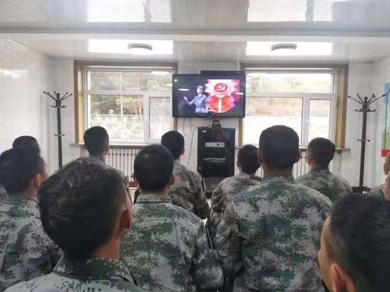 配图1:某部组织官兵集中观看直播演出