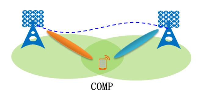 5G CoMP协同方案,通过服务小区和同频邻区对小区边缘交叠区用户的业务信道进行联合处理,可提升小区边缘用户的体验速率。相比于4G技术,5G CoMP可利用的终端天线翻倍,支持更高的数据流数,因此多个小区协作取得的增益也更大。
