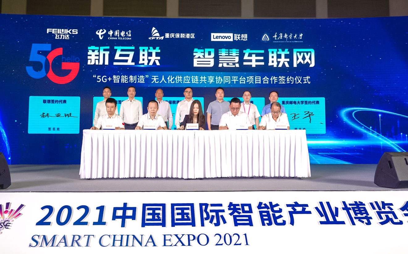 8月23日,第四届中国国际智能产业博览会上,由重庆两路寸滩保税港区管委会、中国电信重庆公司、联想集团、飞力达、重庆邮电大学合作打造的“5G+智能制造”无人化供应链共享协同平台正式签约发布。在重庆两路寸滩综保区内,全国首个商业化L4+I4级车路协同自动驾驶智慧物流配送系统建成,打造了生产企业零库存、零周转、自动配送调度一体化物流运输新体系。