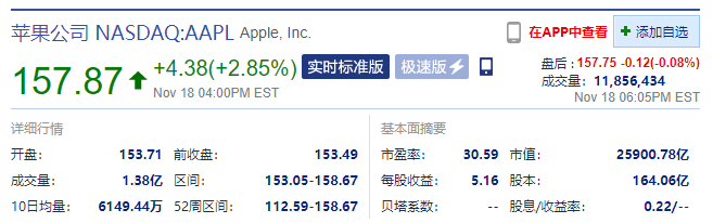 苹果公司的股价在今日最高飙升至 158.67 美元每股,收盘稍有回落,涨 2.85%,报 157.87 美元每股,创下历史新高,市值超 25900 亿美元,超越微软重新夺回“市值全球第一”宝座。