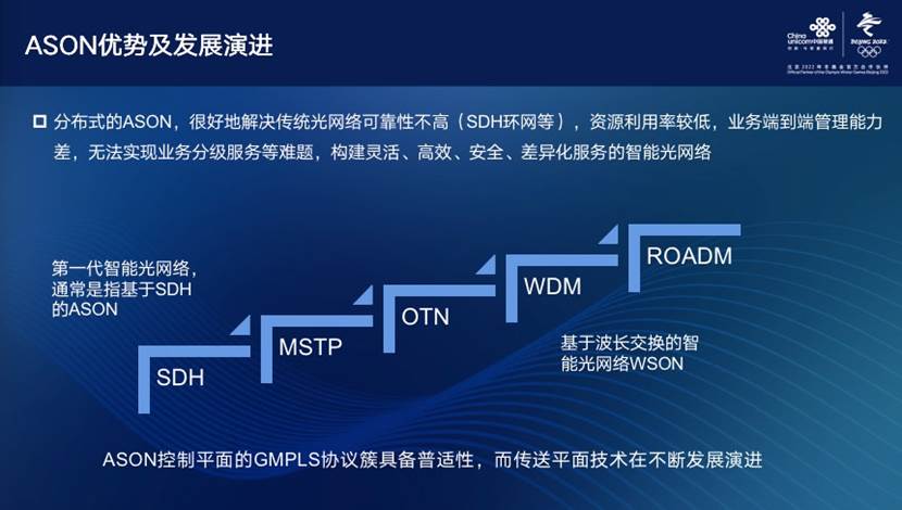 “回顾历程不难发现,传送平面技术在不断发展演进,但ASON控制平面的GMPLS协议簇具备普适性。”唐雄燕表示,基于SDH的智能光网络是ASON的话,那基于波长交换的智能光网络WSON。”