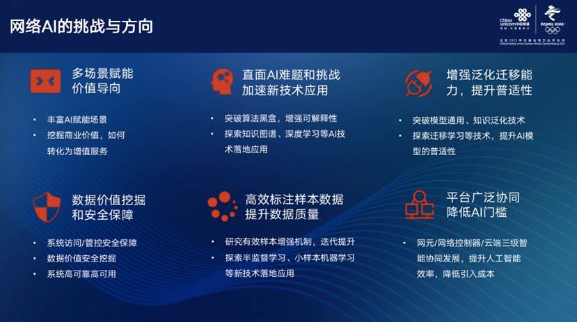 同时唐雄燕强调,AI在网络的方面还面临多方面的挑战,可从六大方面入手。