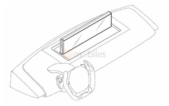 从专利图中可以看出,折叠屏位于中控上方,展开后尺寸预计超过 20 英寸。产品通过一个开槽进行升降,铰链部分预计支持电动翻折。