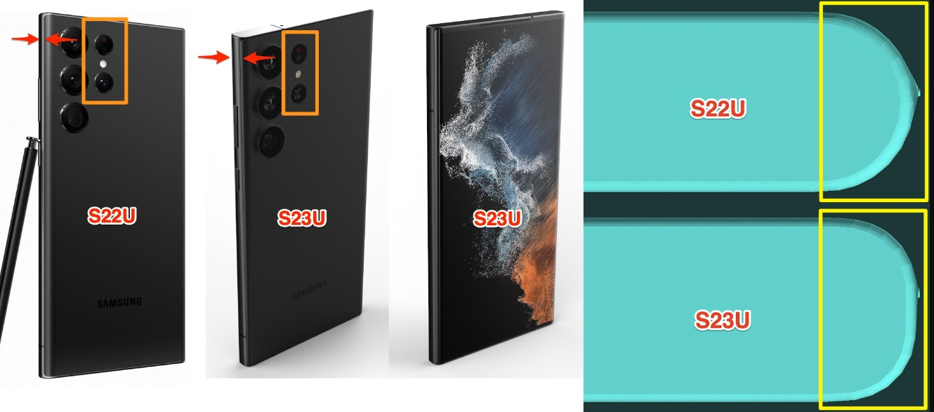 博主 @i 冰宇宙 此前爆料称,三星 Galaxy S23 Ultra 最大的变化是中框宽度增加,使得屏幕曲面部分减少,将更加接近微曲面屏,与新的渲染图相吻合。