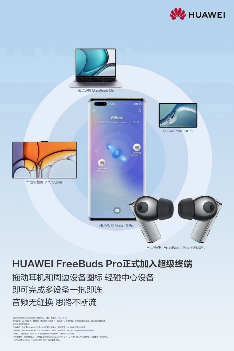 华为方面今日宣布,FreeBuds Pro 正式加入鸿蒙系统超级终端功能,使用鸿蒙机型的小伙伴可以在超级终端界面自由切换音频输出,无论是手机听歌还是平板看视频时都能一拖即连,实现音频无缝衔接。