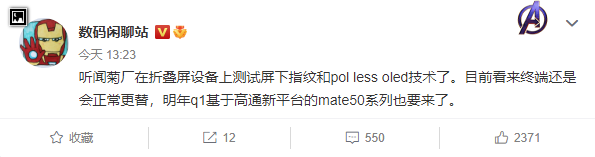 此外,他还透露基于高通新平台(sm8450,或命名为骁龙 898)的华为 Mate50 系列也将在明年第一季度到来。