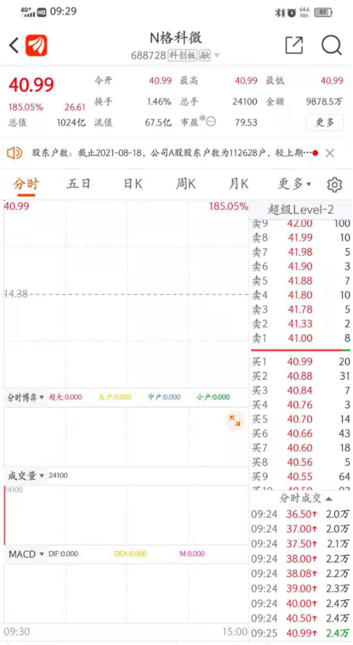 格科微在上交所科创板正式挂牌上市,证券代码为688728,发行价格14.38元/股,发行市盈率为46.92倍。截至盘前,格科微股票报价40.99元/股,涨幅185.05%,总市值突破千亿元。