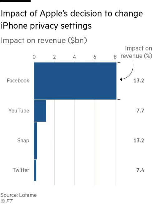 Facebook首席运营官谢丽尔·桑德伯格(Sheryl Sandberg)曾表示,iPhone隐私政策的变化意味着“我们广告定位用户的准确性下降,这增加了广告客户的获客成本。而且……衡量广告效果变得更加困难。”