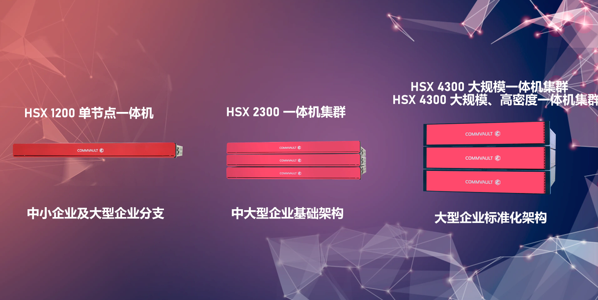 最后,在HSX 1200和HSX 2300基础上,面向大型企业数据保护需求,进一步推出大规模、高密度HSX 4300集群。在PB以上规模,为多地数据中心,物理、虚拟化及云环境,多应用、多云需求,提供面向未来的数据保护架构。