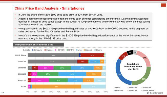 不难看出,高端市场依旧是苹果的天下,但国产手机中 vivo 已经慢慢走上来了,除了中端市场稳坐国内第一之外,在高端份额方面已经和华为持平。