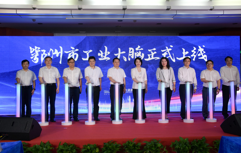 (鄂州市委书记孙兵,市委副书记、市长陈平,湖北联通党委书记、总经理华豫民,湖北联通党委副书记、副总经理覃晟及省市各级领导共同启动工业大脑平台)