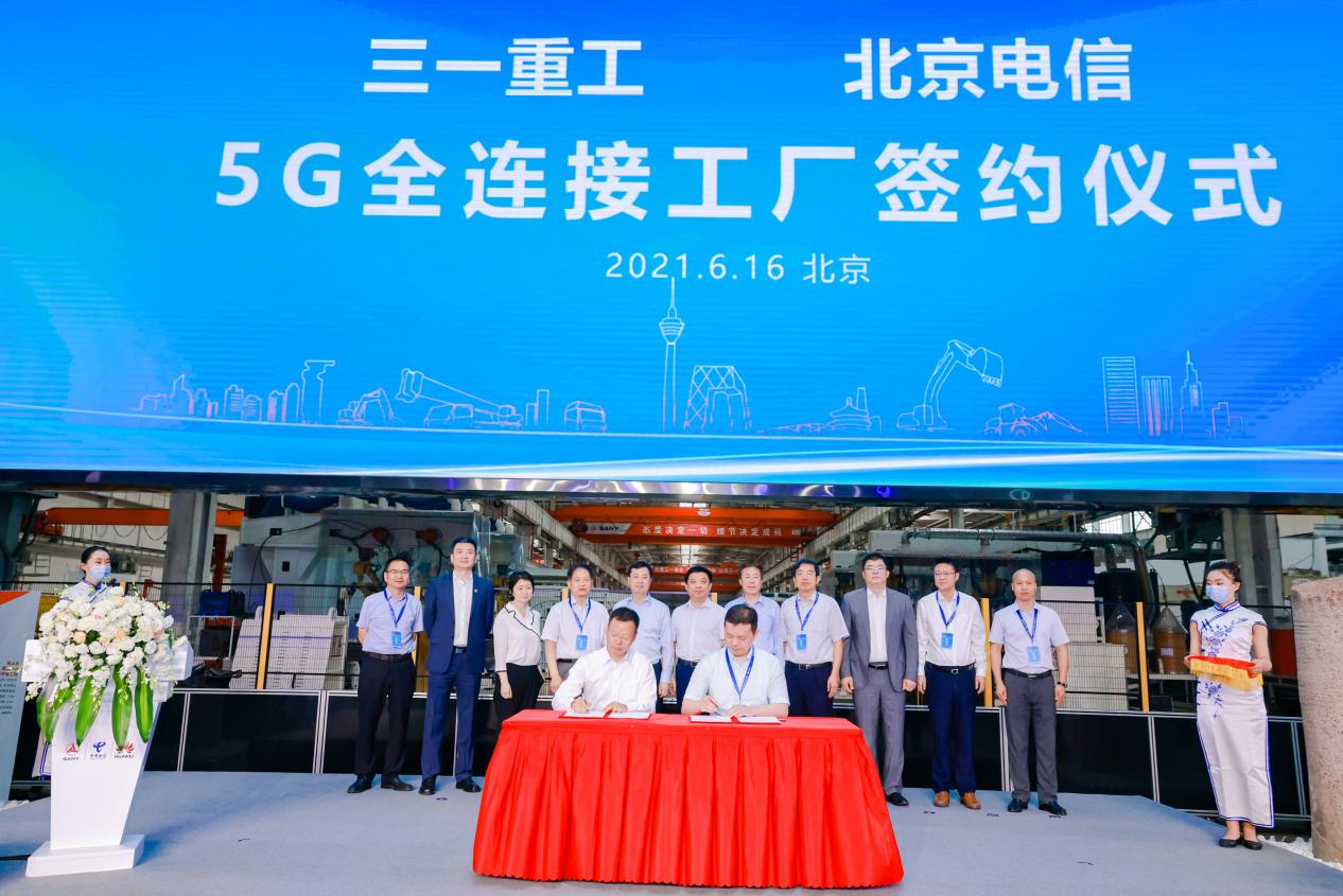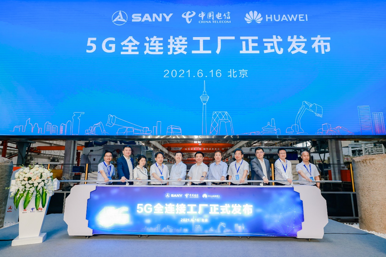 2021年6月16日,三一重工携手中国电信、华为共创智能制造新未来,装备制造业首个5G全连接工厂发布会在北京昌平区三一重工南口产业园成功举办。工业和信息化部信息通信管理局副局长鲁春丛,中国信息通信研究院副院长王志勤,北京市通信管理局一级巡视员祝军,昌平区经济和信息化局调研员王发东,三一集团董事、高级副总裁代晴华,中国电信集团党组副书记邵广禄,华为中国区电信系统部部长郭海龙,中国电信北京公司党委书记、总经理肖金学等政产学研用各方代表汇聚一堂,就5G+云+AI在智能制造的应用进行了深入的总结研讨和分享,见证了三一重工与中国电信的5G全连接工厂发布及现场签约,让5G智能制造跑出加速度。