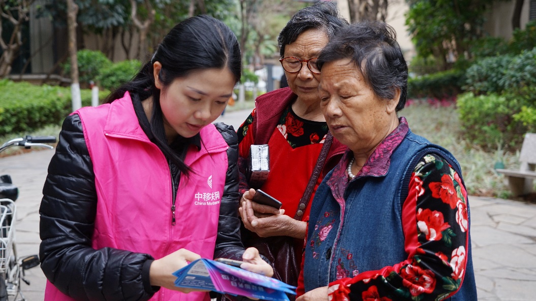 为助力解决老年人在运用智能技术方面遇到的难题,中移互联网组织青年志愿者走进社区开展“适老”服务,为老年人科普智能手机使用知识,介绍新型电信网络诈骗典型案例,展示超级SIM卡功能,让老年客户体验足不出户开通SIM盾、手机充当门禁卡及交通卡的新功能,有效防范木马病毒盗用密码等风险,实现安全转账的同时解决忘带门卡等出入难题。
