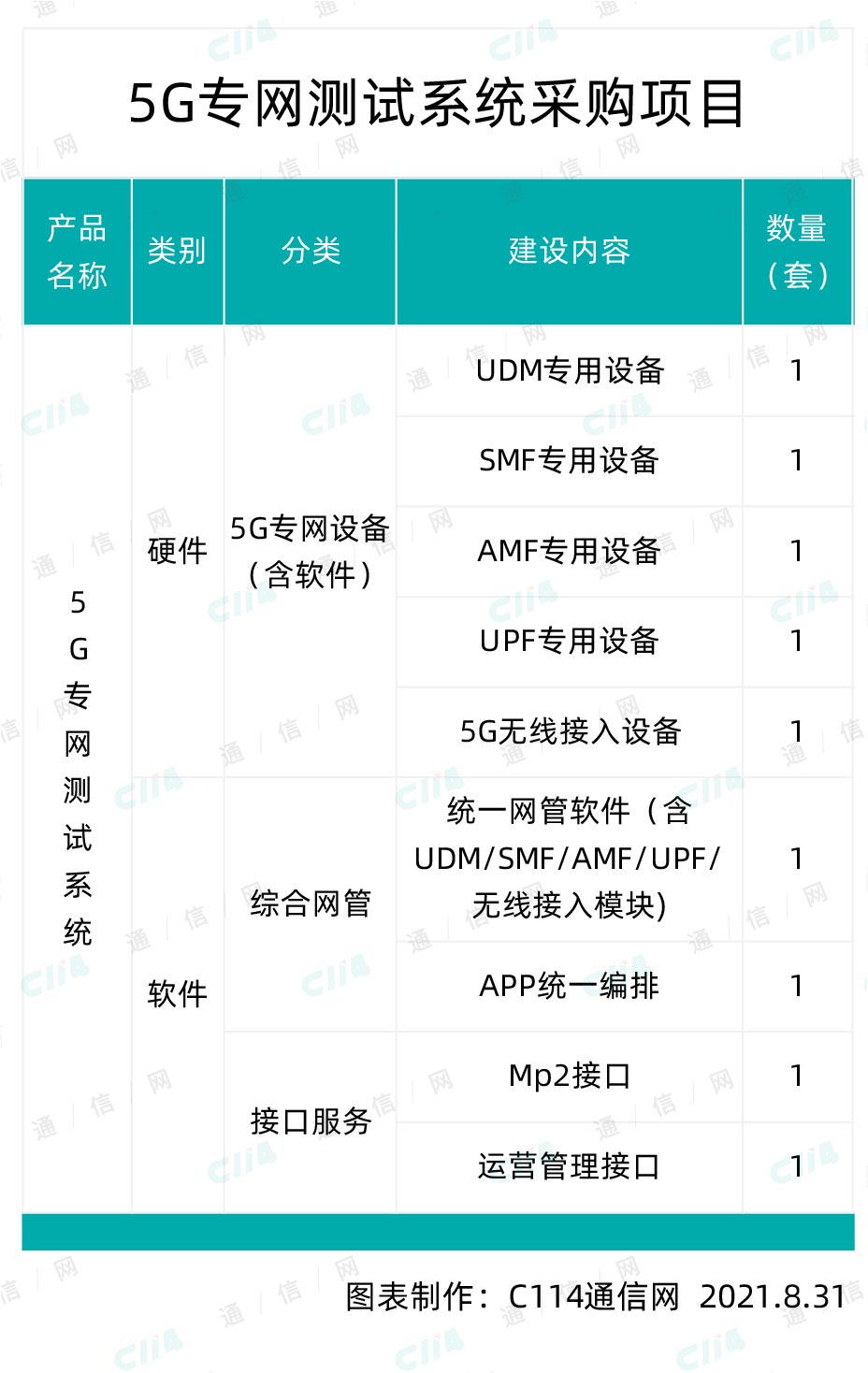 据此前中移物联网公司发布的采购公告显示,该次5G专网测试系统采购项目,采购的内容主要包括硬件和软件两部分,其中硬件部分为5G专网设备(含软件);软件部分为综合网管和接口服务。具体采购的产品及需求量见下表: